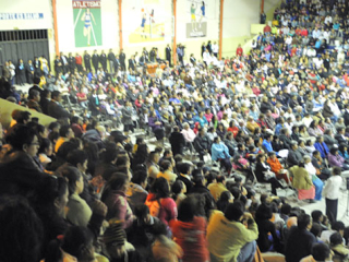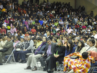 Al final del servicio, en el Coliseo, líderes de las comunidades indígenas trajeron presentes, típicos de su región.